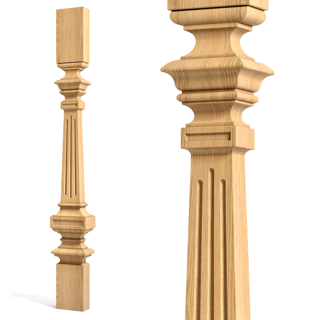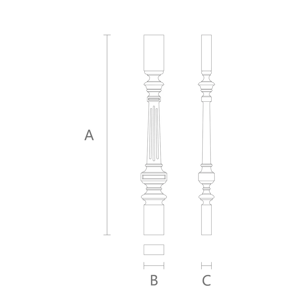 The wooden baluster L-079 has an impressive appearance due to its strict geometric pattern. This model is adorned with vertical and horizontal grooves. It will perfectly fit into a classic-style interior. Wooden balusters L-079 match perfectly with carved posts L-080 and will be an excellent option for your staircase!