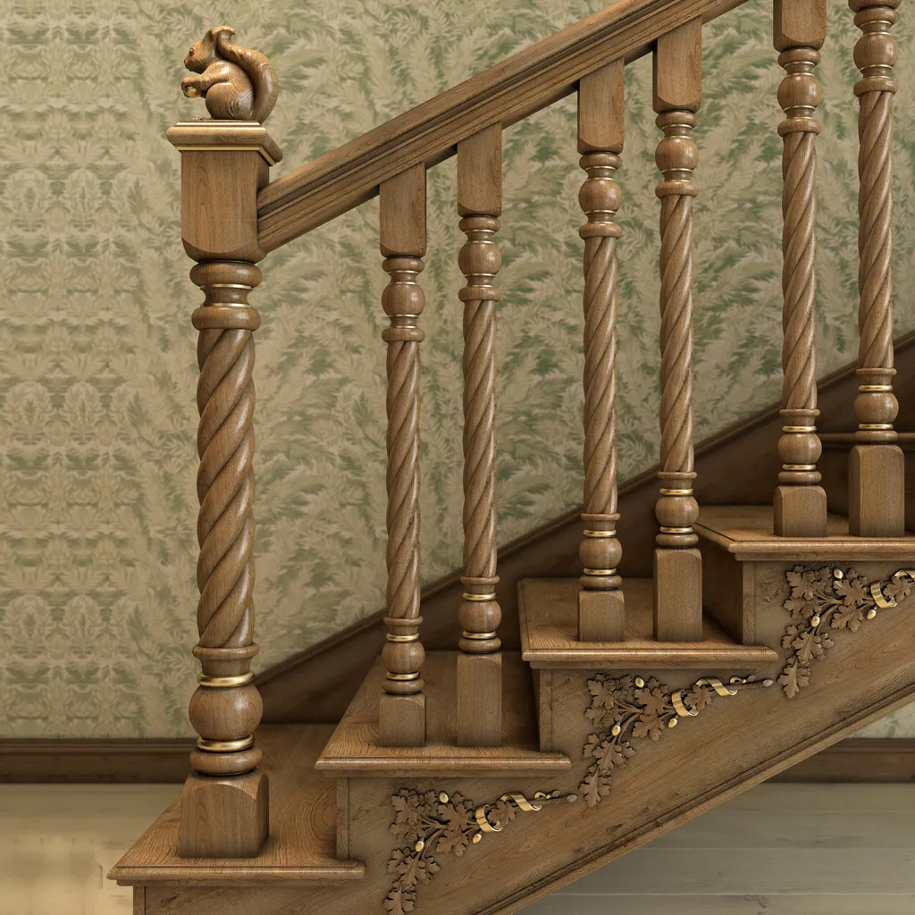 L-051 Carved Spiral Wooden Post — a classic and simple option for small staircases. It combines uniquely with L-030 balusters. It harmonizes well with elements from its own L-050 collection. Excellent finishing touches for the L-051 post can be our "artichoke," "squirrel," or "owl" finials. Wooden stair posts L-051 are very popular and often included in stock. You can also order them in oak and beech.