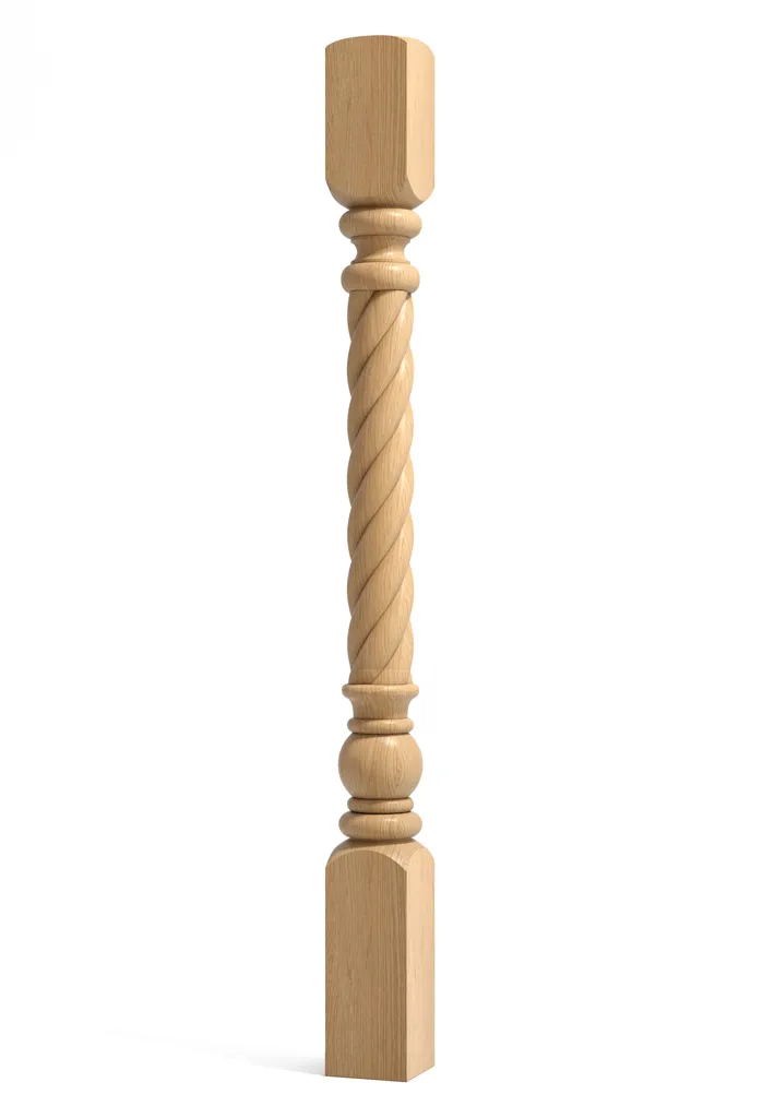 L-051 Wooden Stair Post: A Carved Spiral Masterpiece