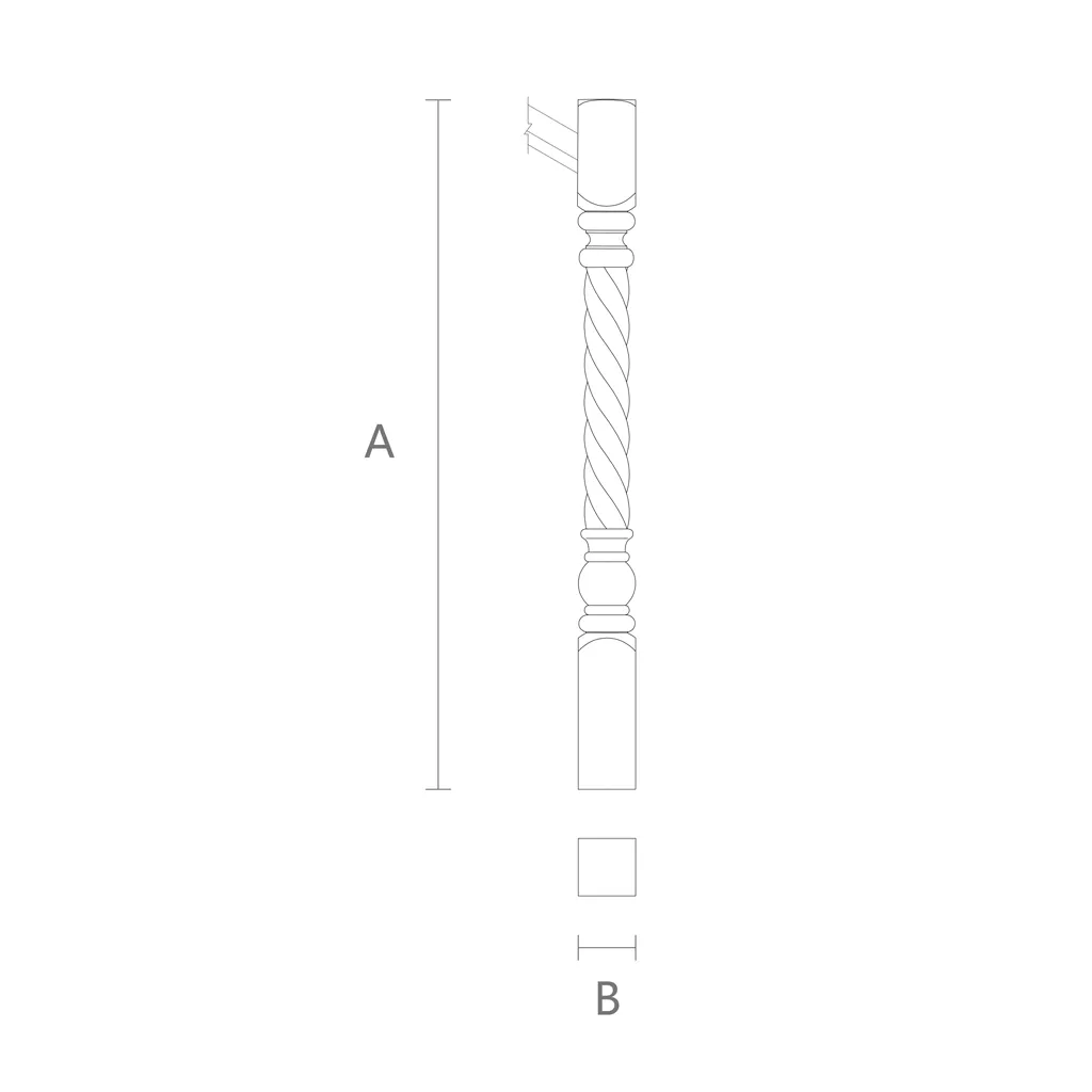 The L-051 wooden stair post pairs uniquely with L-030 balusters from its own collection. The L-030 balusters have a simple and strict shape that contrasts with the carved and spiral post. The L-030 balusters create a sense of lightness and airiness, as well as emphasize the elegance and grandeur of the post.