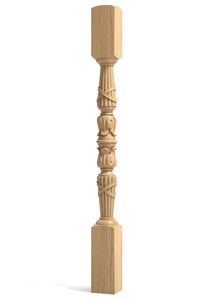 Wooden stair post L-077: Art of Carving and Natural Wood