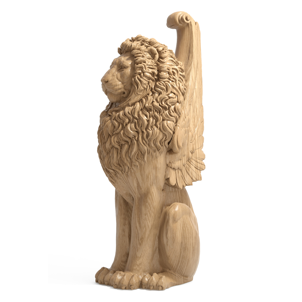Majestic and beautiful lion. The stair column L-108 resembles a majestic lion, proudly elevated and attracting attention with its expressive form and detailing. As a central element of the carved staircase, the carved column emphasizes the luxury and status of the space.