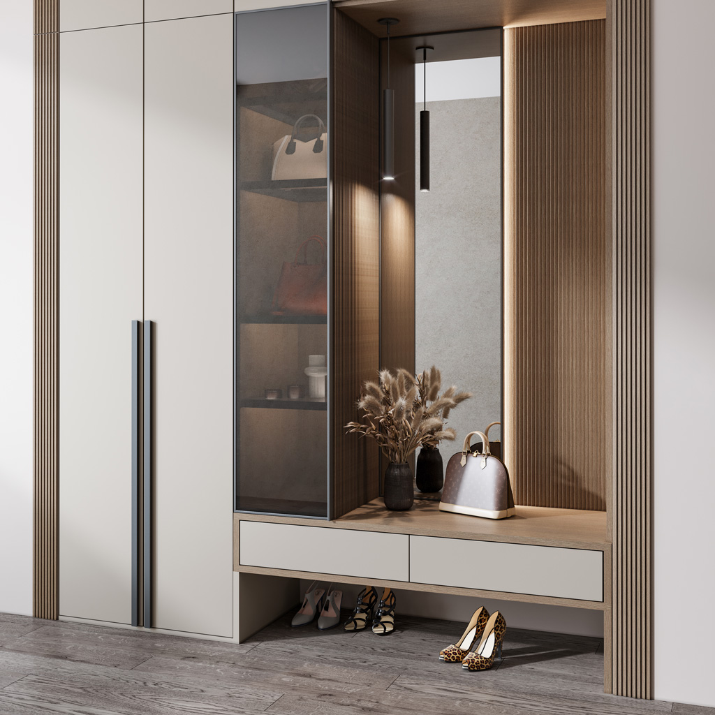 Create a finished interior composition with coved complementary elements: