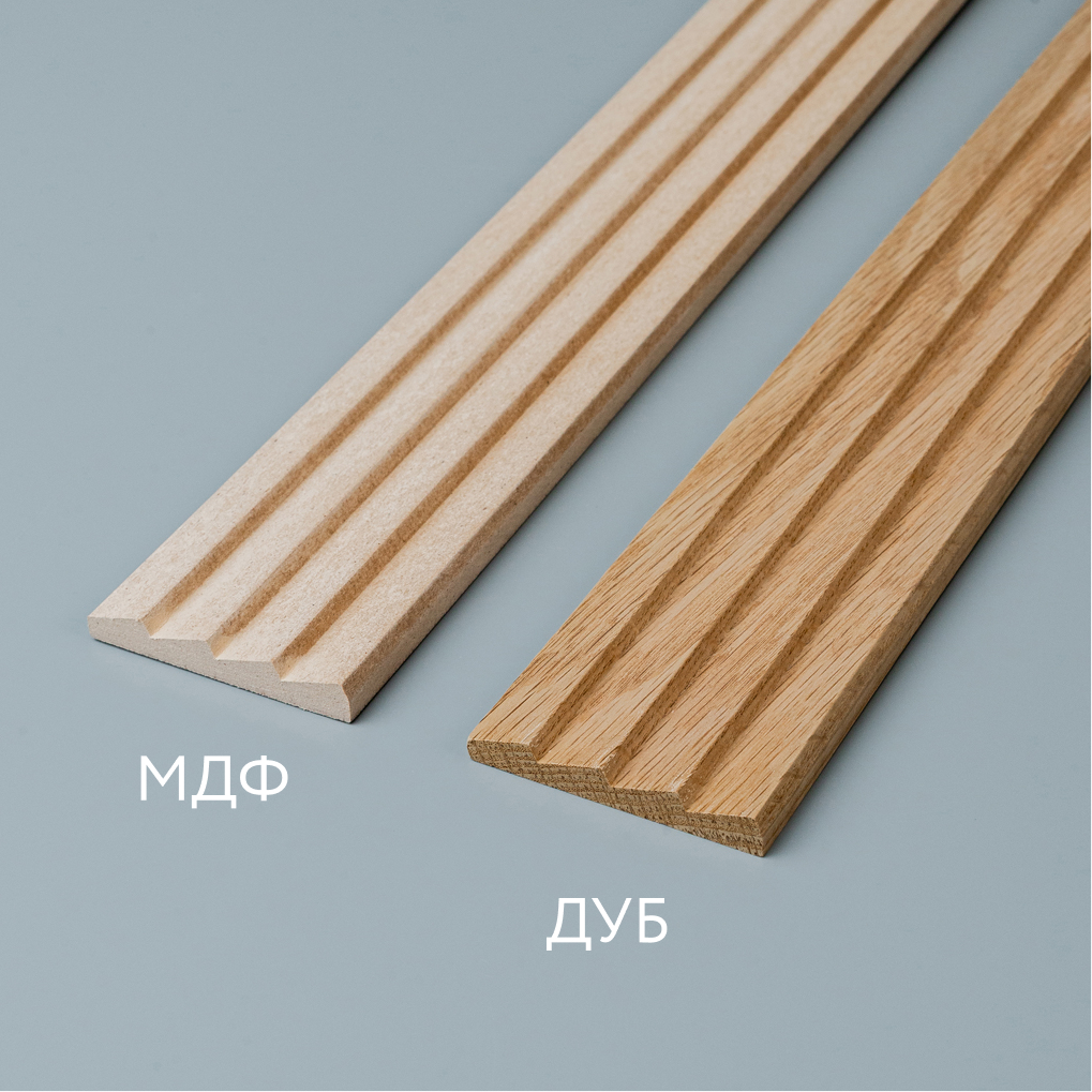 Wooden molding MLD-031: oak, beech, MDF — grooved profile for refined architectural finishing