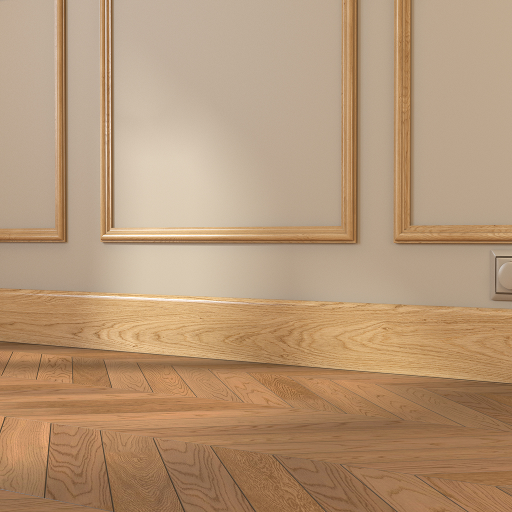Oak skirting board with classic lacquers creates expressive lines for traditional elegant finishing of prestigious design and neoclassical style of classic level. Complemented byplinthwide sections to create elegant architectural compositions.