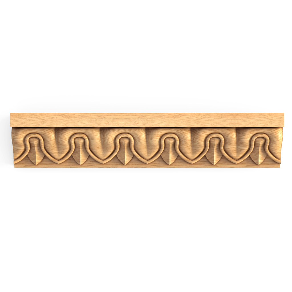 Carved Molding K-002 — one of the options for the classic "Bark Leaf" pattern. The simple and elegant design combines beautifully with more complex carved elements. The convenient cross-section expands the possibilities for using the molding. Doors, staircases, wall panels, cornices, kitchen facades, beds, bedside tables, and cabinets — with it, any furniture will look stylish and unique. Thanks to the backing, the wooden molding K-002 is easy to assemble and install.