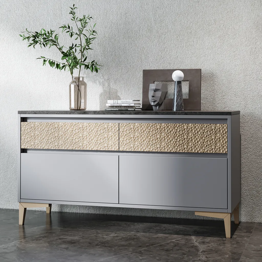 The designer accent relief texture of the molding was created as a complement to the Mercury HL-038 handle. Modern textured solid wood molding K-127. The stylish counter-relief ornament consists of concave recesses and creates a play of light and shadow that will enliven the interior space, producing varied visual effects depending on the placement of the light source. Model K-127 is suitable for decorating furniture and walls. It harmoniously combines with various surfaces: glossy and matte fronts, glass, and metal.