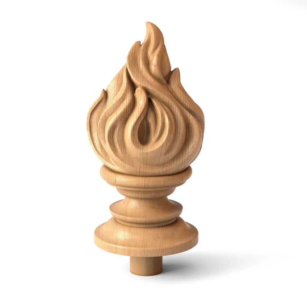 The carved wooden finial L-084 is designed in the Empire style. The decorative flame motif symbolizes victory and triumph of life. Classic architectural Empire style implies the presence of columns, pilasters, carved cornices, as well as various sculptures of animals and mythological creatures. The finial L-084 harmoniously complements the aforementioned elements, adding luxury to the interior and revealing the beauty of its style. It looks great with traditional classical ornamentation: laurel wreaths, palm and acanthus leaves, floral garlands. The finials for posts can be ordered in one of three standard sizes.