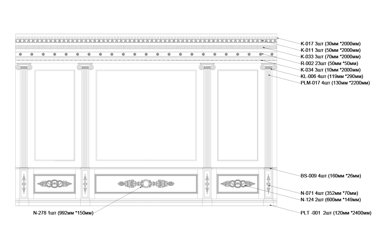 - Carved molding K-034 — helps create expressive accents in the composition.