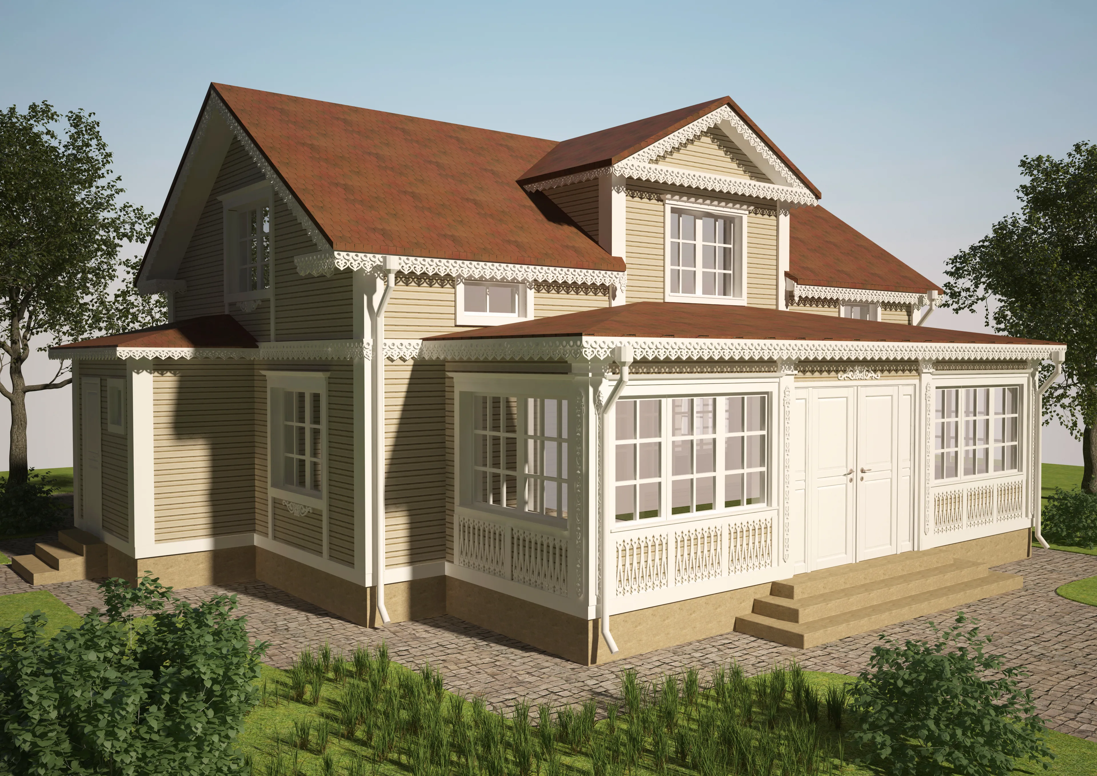 - High-quality materials: All facade elements are made from high-quality wood, ensuring durability and resistance to external influences.