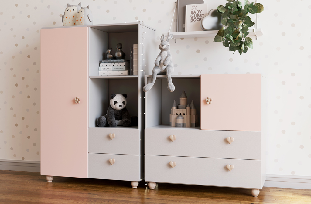 With the KMD-008 dresser, you can create a playful and creative atmosphere in a child's room. Using bright decorative elements, such as the "Flower" and "Heart" handles, makes the dresser not only useful but also appealing to children. It can become part of play, helping the child develop imagination and creativity.