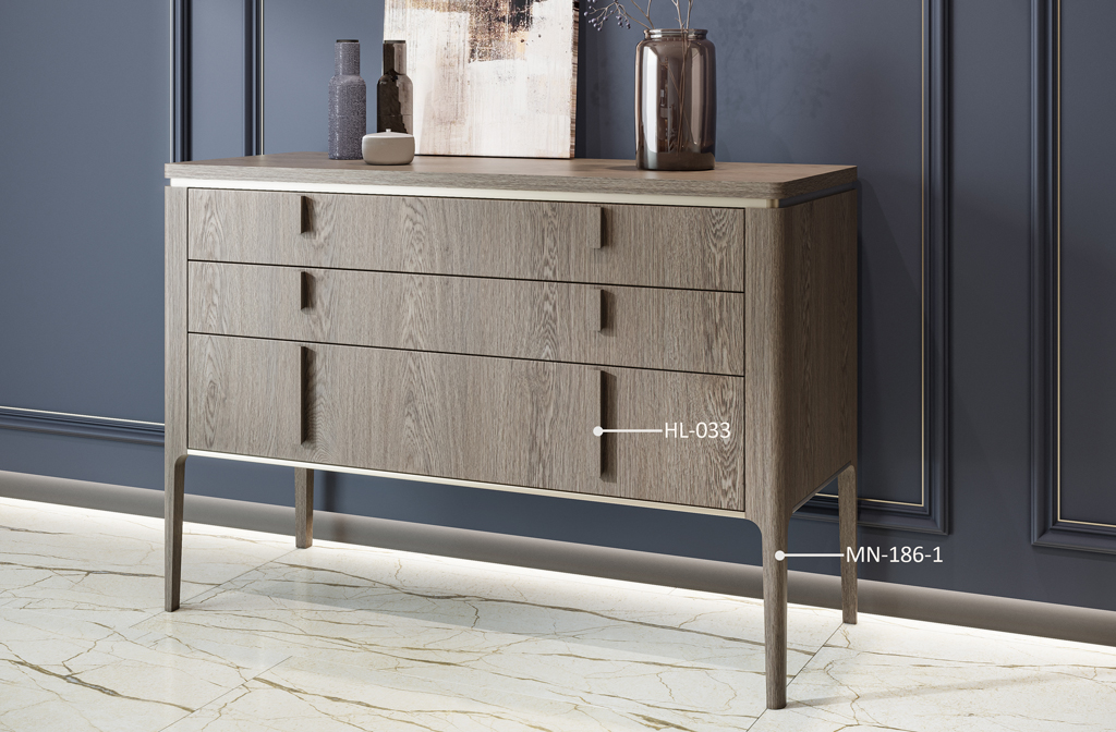 Handle HL-033 is not only convenient to use, but also serves as an important decorative element that completes the look of commode KMD-016. Its smooth surface and simple shape create a sense of cleanliness and order. This handle pairs beautifully with modern classic commodes, where both functionality and aesthetic appeal are important.