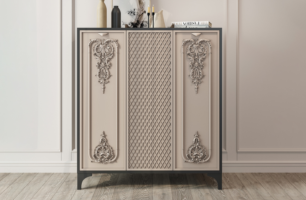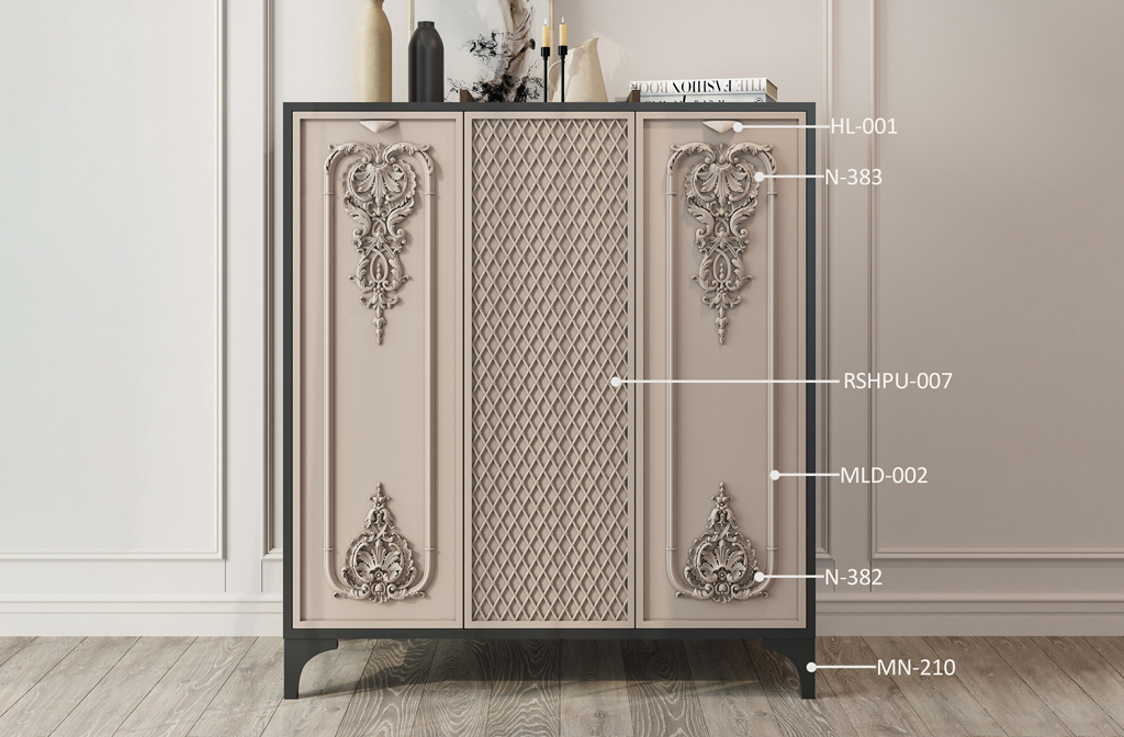 Decorating chest of drawers KMD-028 is a process that requires attention to detail and a sense of style. Using high-quality decorative elements such as handles, carved appliqués, and legs allows you to create a unique piece of furniture that will become a decoration of your home.