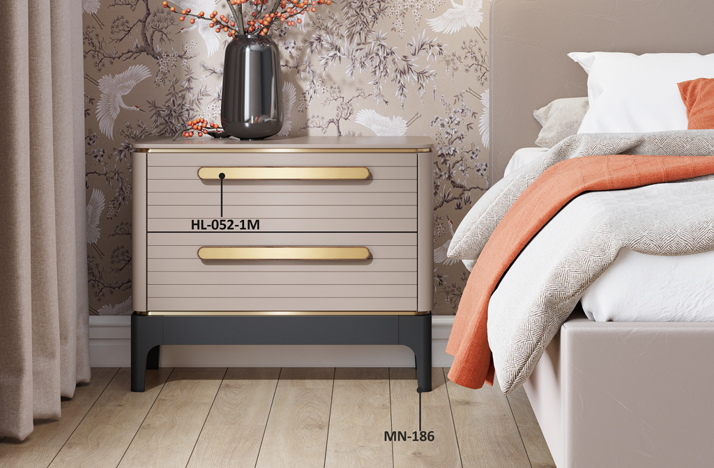 Combine the cabinet with soft textile elements, such as cushions and blankets, to create a cozy and relaxing atmosphere. Handle Duet HL-018.1 and elegant legs will add elegance to the bedroom, while wooden surfaces of the cabinet will create a sense of warmth and comfort.