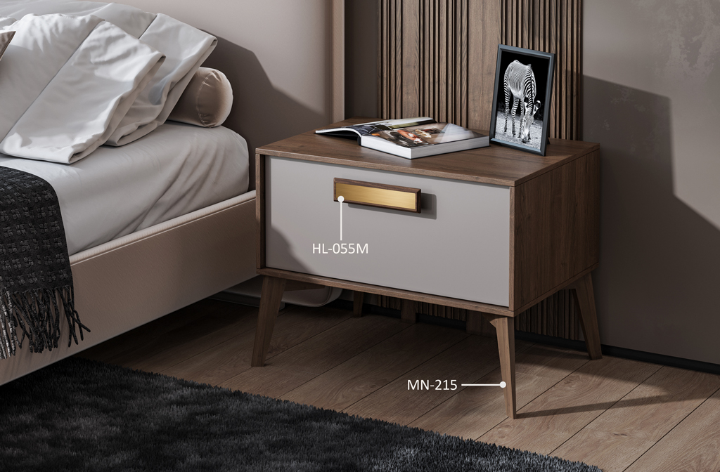 Combine the cabinet with soft textile elements, such as cushions and blankets, to create a cozy and relaxing atmosphere. Handle Duet HL-018.1 and elegant legs will add elegance to the bedroom, while wooden surfaces of the cabinet will create a sense of warmth and comfort.
