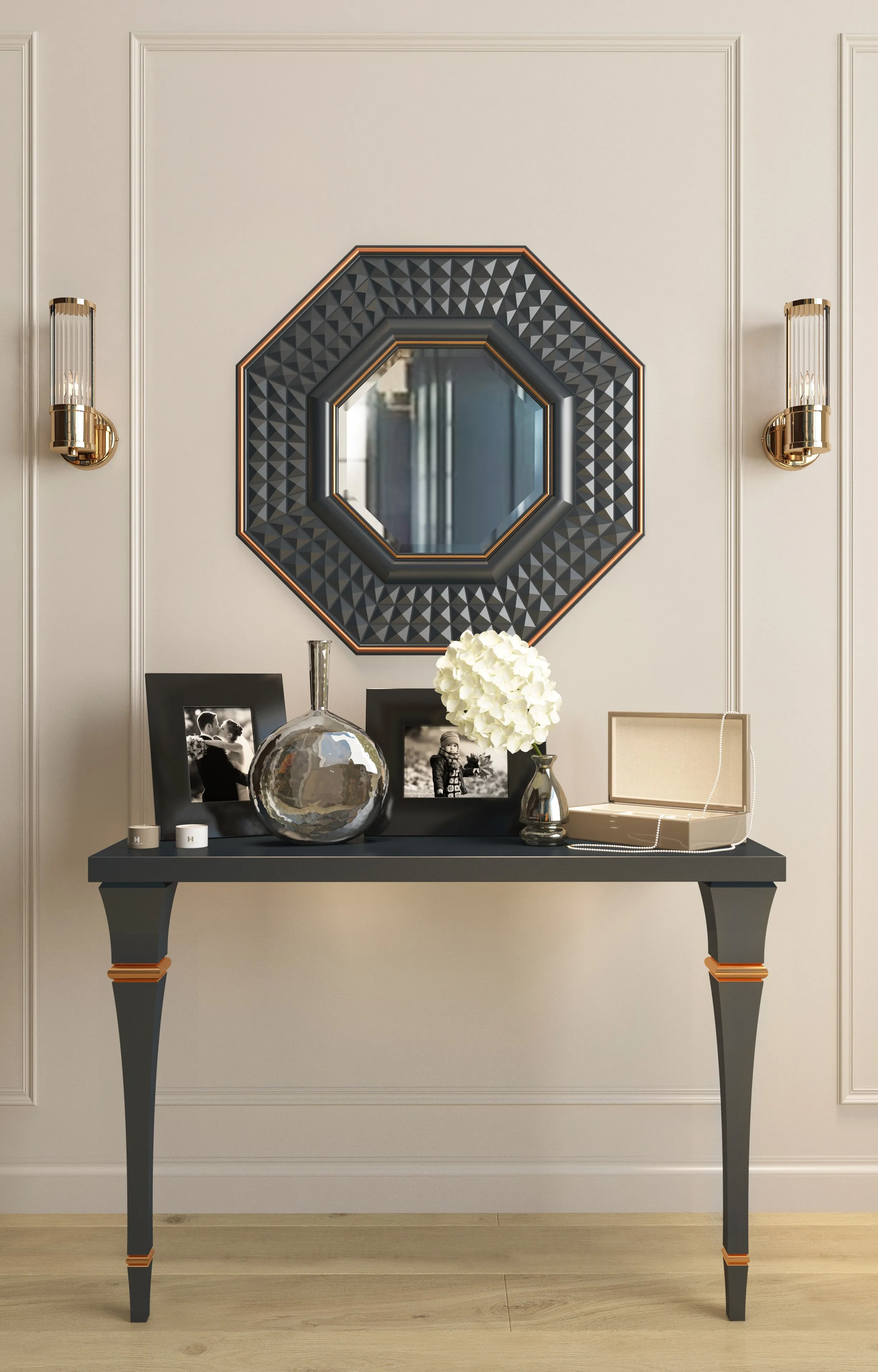 - Living room – the mirror in carved frame will become a key accent, and the console will complement the interior with a convenient surface for decor.