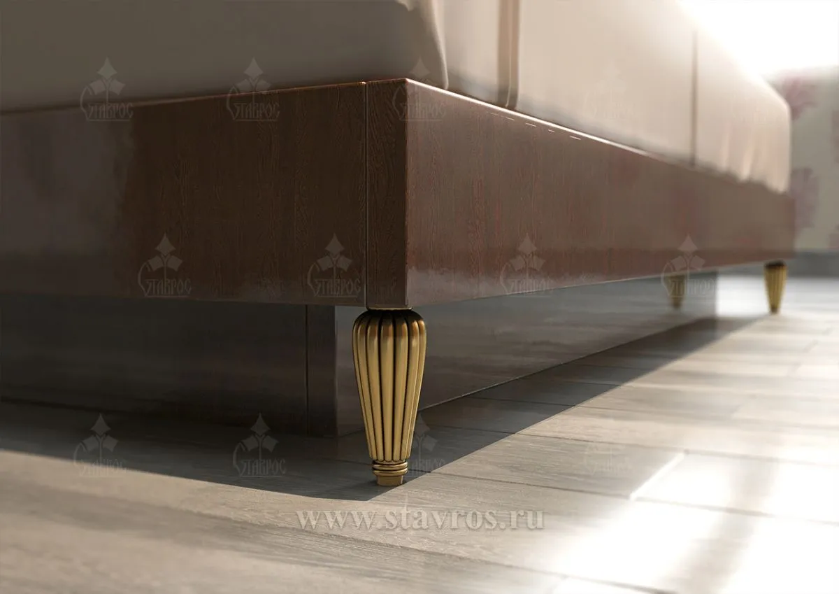 One of the key design elements of the bed are the legs. In model KRV-007, refined furniture legs with a gold finish are used, giving the structure an elegant appearance. However, they can be replaced or modernized using various leg options from STAVROS.