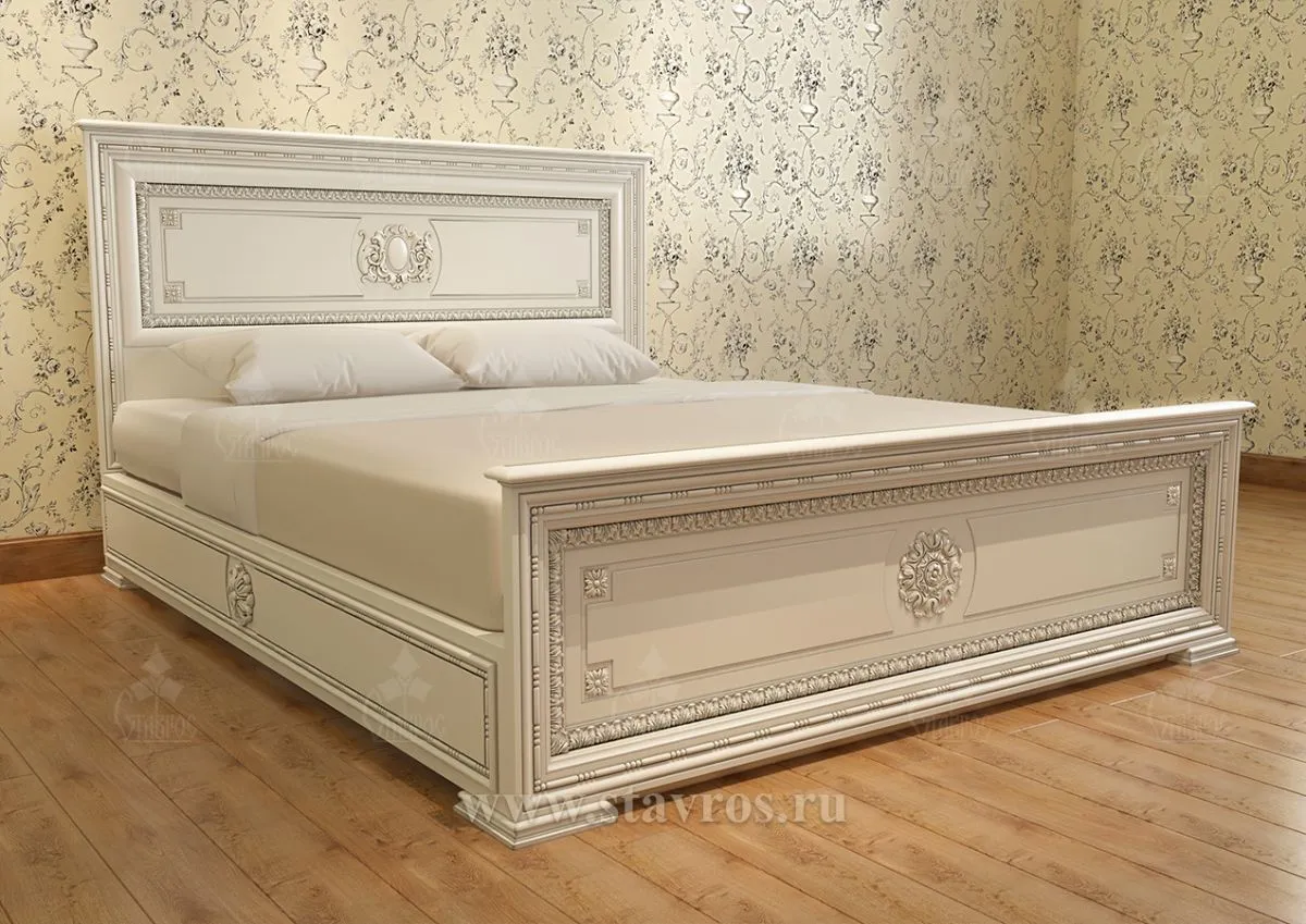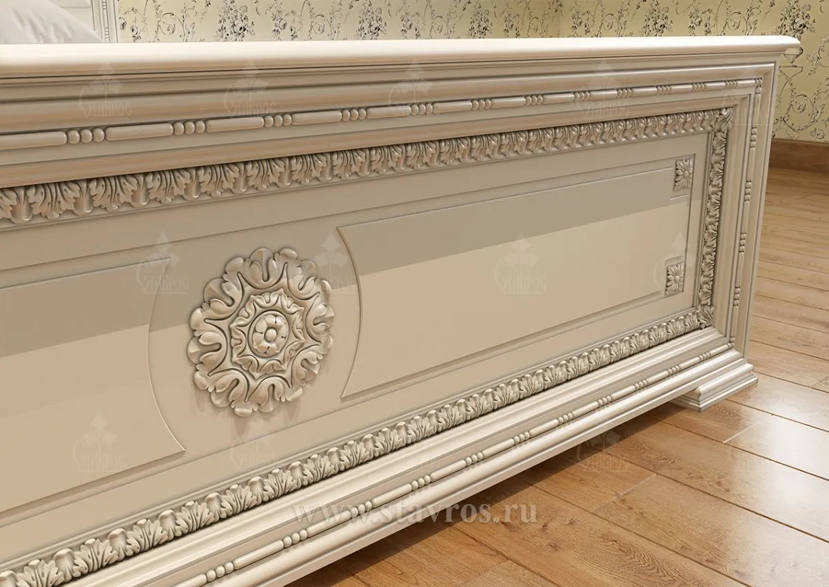 Bed KRV-009 is an example of refined classic style, which can be made even more expressive with STAVROS products. Adding carved appliqués, moldings, trim, molded elements, and decorative legs can turn the bed into a true work of art and create a dream bedroom.