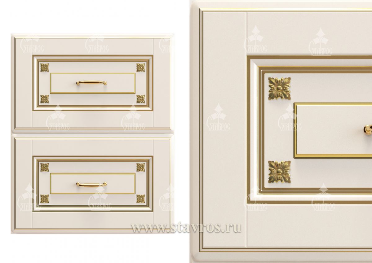 Facade FAS-035 is an example of refined decoration inspired by the traditions of classical architecture and furniture art. Its main feature is the magnificent combination of symmetry, golden elements, and elegant relief carving. Such a facade is suitable for premium-class furniture, creating an elegant and noble interior.