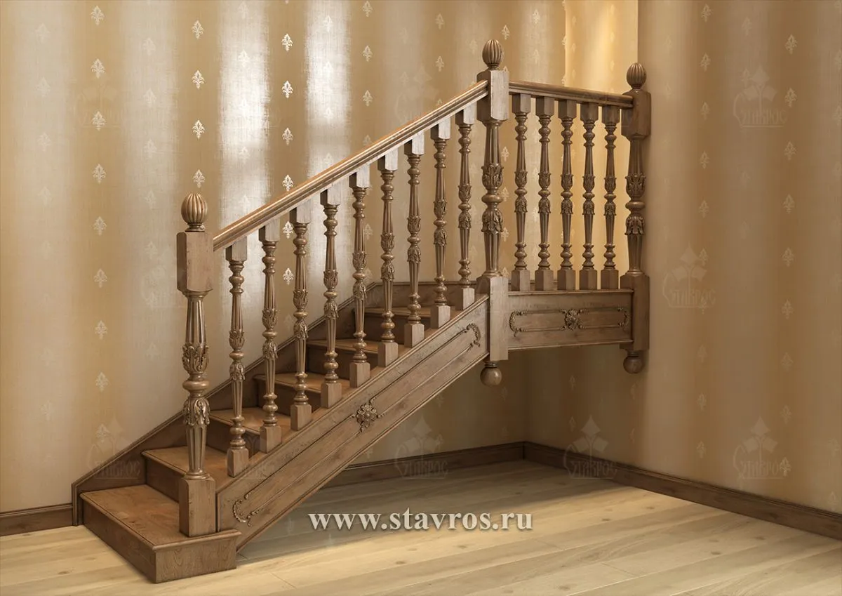 Carved staircase RLE-055 – a classic wooden staircase with a unique design