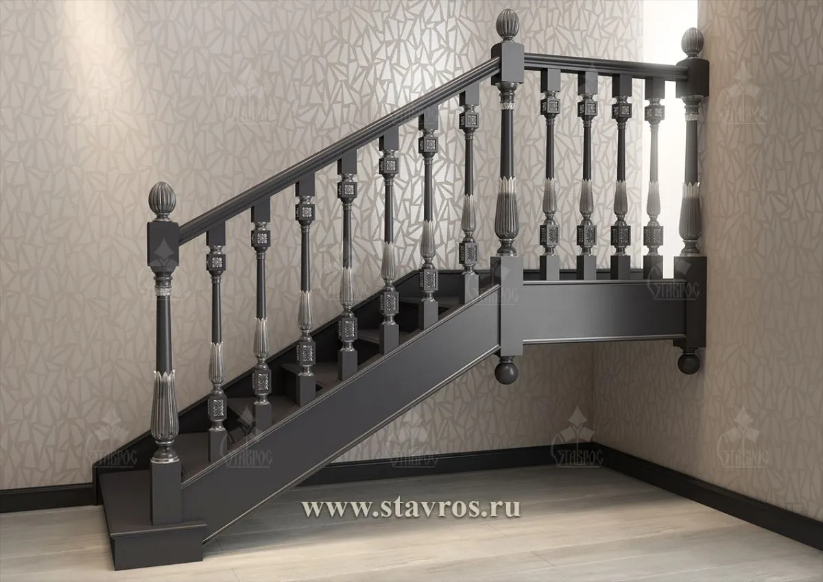 with a similar color palette. balusters, handrails и posts Carved balusters with silver inlays emphasize the classic style.